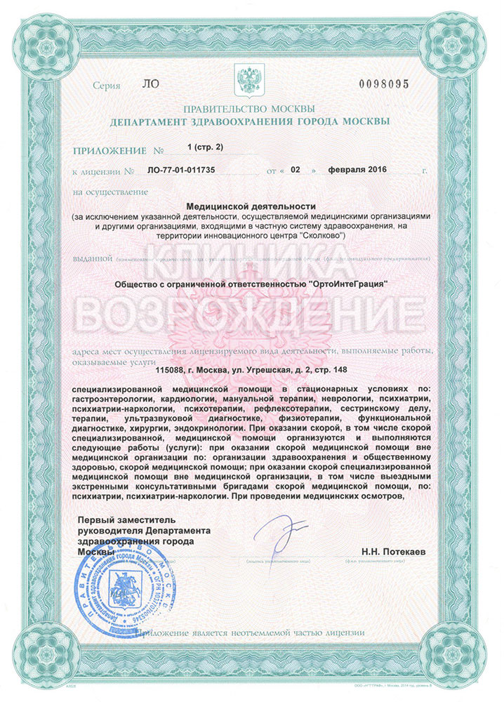 Врачи со средним стажем работы более 15 лет. Предоставление лицензий от клиник.